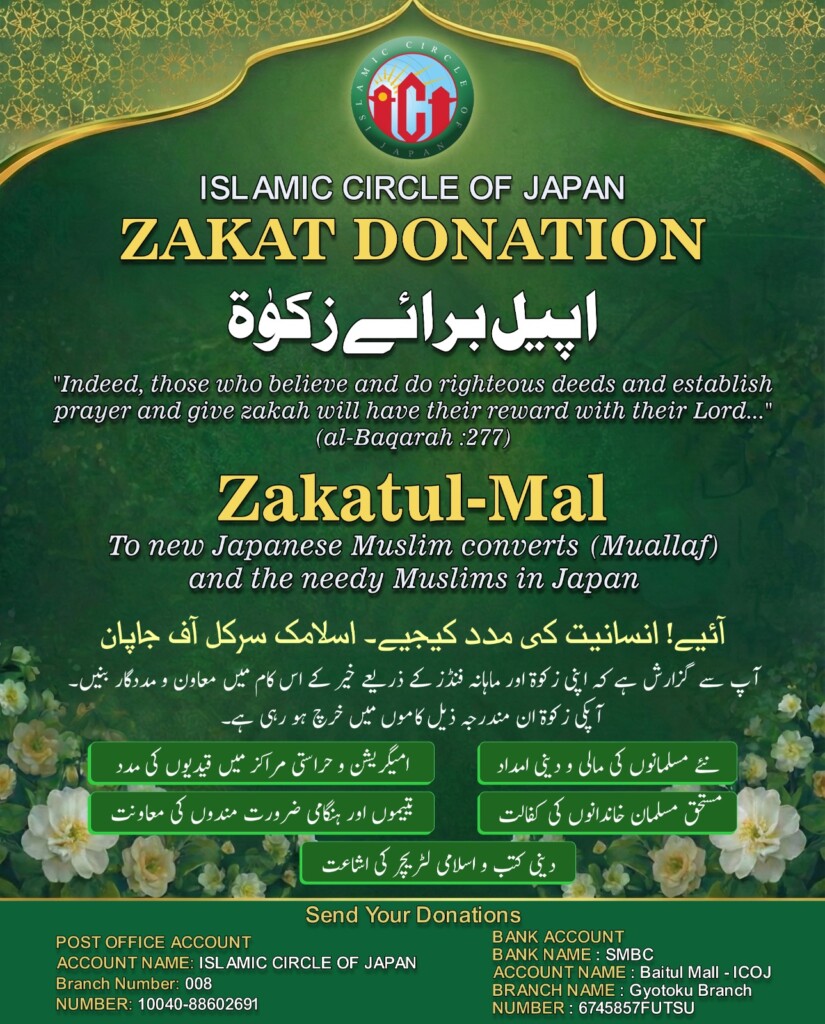 The Islamic Circle of Japan is excited to announce that members of ICOJ elected Malik Amanat Ali as the organization’s new President (Ameer) for the upcoming two-year term (2024-2026).
